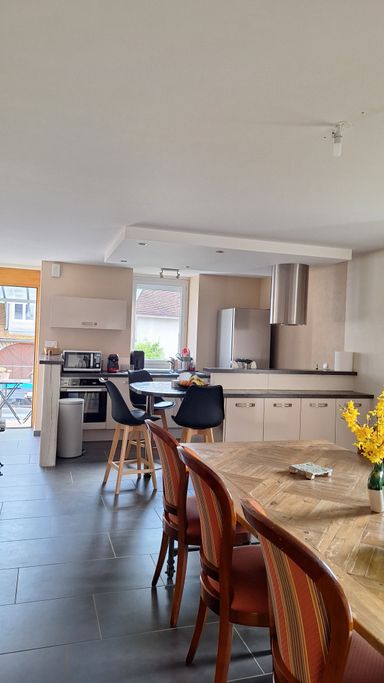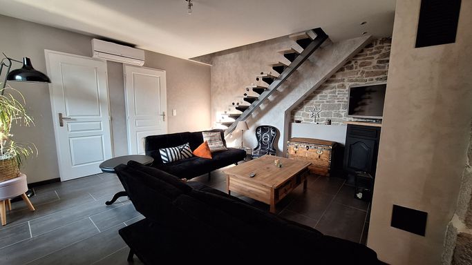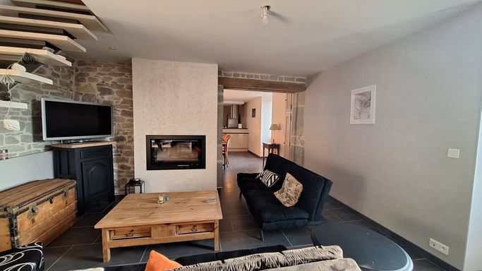 ✨ Salon avec cheminée et TV, pièce de vie avec cuisine entièrement èquipée,